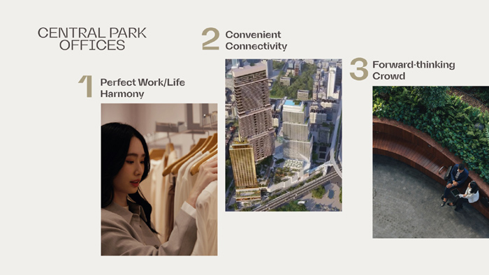 การพัฒนาโครงการ “Central Park Offices” ซึ่งเป็นอาคาร Prestigious Class A จะเป็นอีกหนึ่งอาคารสำนักงานที่ดีที่สุดของเซ็นทรัลพัฒนา พร้อมมอบ “ประสบการณ์พิเศษที่เหนือกว่า” ภายในโครงการมิกซ์ยูส Dusit Central Park ด้วยจุดเด่น 3 ข้อ ดังนี้