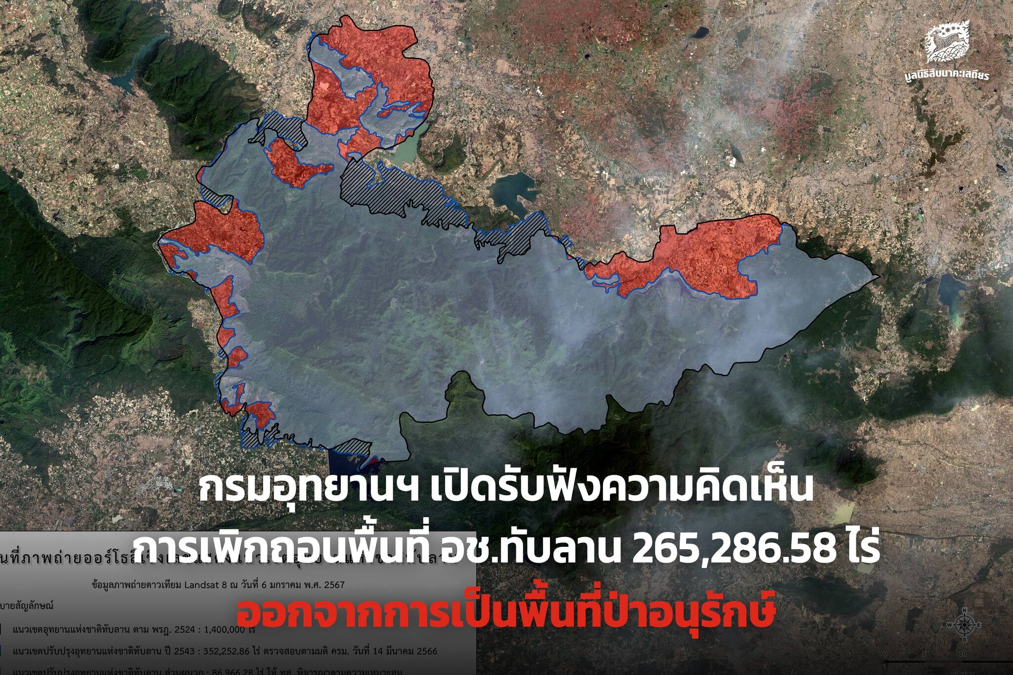 อ่านข่าวต้นฉบับได้ที่ : มูลนิธิสืบฯ-โลกออนไลน์ แห่ค้าน เพิกถอนพื้นที่ป่าอนุรักษ์ อุทยานแห่งชาติทับลาน 2.65 แสนไร่