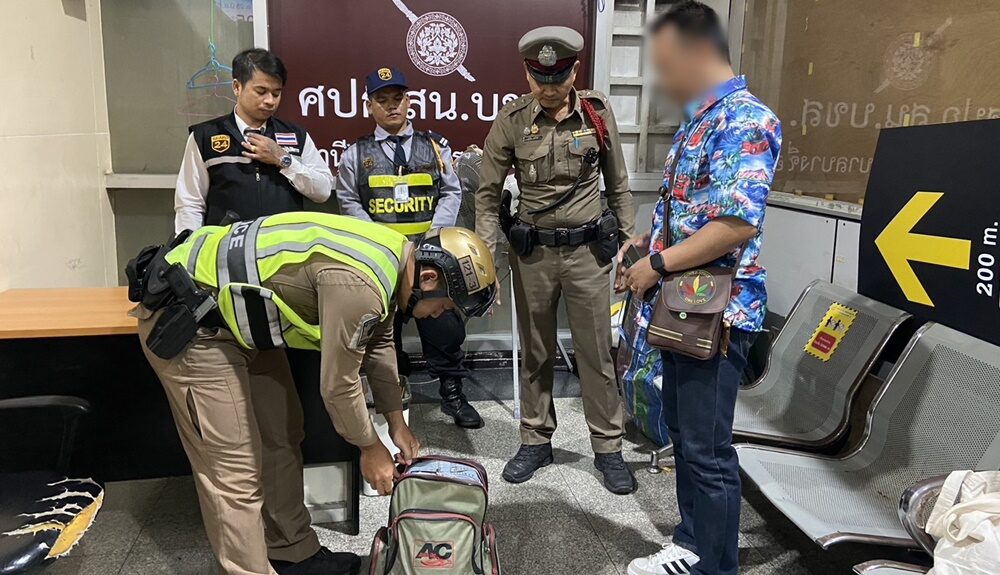 สืบเนื่องจากสายตรวจ สน.บางซื่อ ออกตรวจพื้นที่มาถึงบริเวณภายในสถานีขนส่งผู้โดยสารกรุงเทพ (หมอชิต) พบผู้ต้องหายืนสะพายกระเป๋าเดินทางอยู่ ท่าทางมีพิรุธต้องสงสัย เจ้าหน้าที่จึงขอตรวจค้น