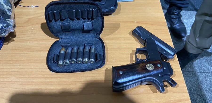 เบื้องต้นพบว่ากระเป๋าที่นายธเนศสะพายมา มีวัตถุต้องสงสัยอยู่ด้านใน จึงประสานเจ้าที่ บขส. นำกระเป๋าเข้าเครื่องสแกนโลหะ พบอาวุธปืนไทยประดิษฐ์ ขนาด .38 จำนวน 1 กระบอก และเครื่องกระสุนปืนขนาด .38 อีกจำนวน 6 นัด ซุกซ่อนอยู่ในกระเป๋าผ้าสีดำ ที่อยู่ในกระเป๋าเป้เดินทางสีเขียว จึงยึดไว้เป็นของกลาง