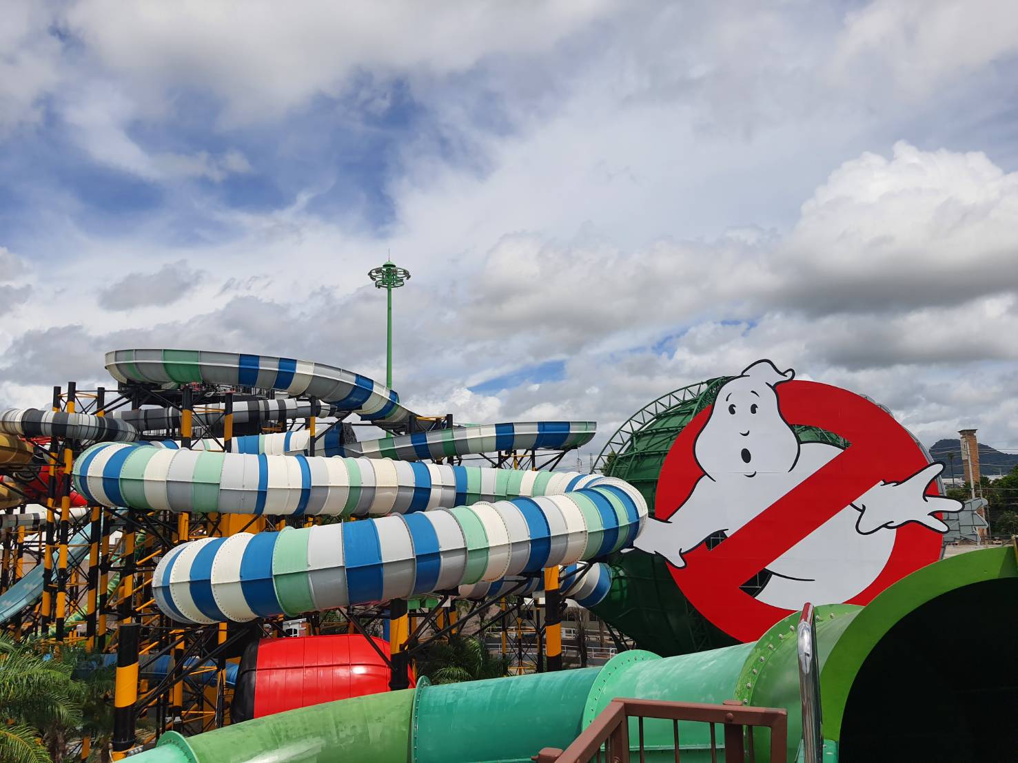 ถ้าเล่นโซน Jumanji จนพอใจแล้ว ก็มาต่อที่โซน Ghostbusters (บริษัทกำจัดผี) ซึ่งก็จะมี 3 ช่องให้ได้เล่นอีกเช่นกัน แต่ละช่องก็จะมีจุดเด่นแตกต่างกัน เริ่มจาก สไลเดอร์ สไลเมอร์ สปีด เรเซอร์ ซึ่งจะใช้ห่วงยางนั่งได้สองคน (แต่สามารถเล่นคนเดียวได้) โซนนี้มีไฮไลต์ตรงตัวสไลม์ตรงสุดทางสไลเดอร์ที่เราจะสไลด์ขึ้นไปหาสไลม์ที่ปล่อยน้ำลงมา