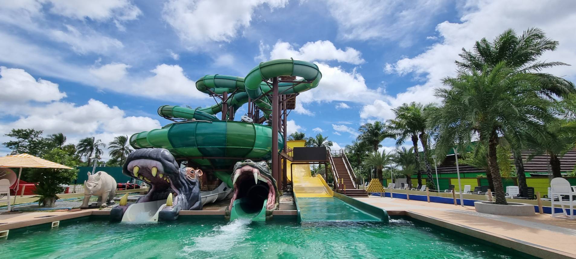 หลังจากขับโกคาร์ทจนชุ่มเหงื่อแล้ว ถึงเวลาลงน้ำเย็น ๆ สักที ทีนี้ก็ขึ้นอยู่กับเราแล้วจะเล่นเครื่องเล่นไหนก่อน ถ้าอยากจะวอร์มกับอะไรชิล ๆ ก็ย้อนไปที่มาต่อที่ โฮเทล ทรานซิลเวเนีย ก็ได้ หรืออยากจัดหนักกับเครื่องเล่นที่รับประกันความเสียวก็ไปที่ โซน Jumanji ที่มีช่องลงให้เลือกสนุกได้ 3 ช่อง แต่ละช่องรับประกันฟีลความสนุกที่ต่างกัน ส่วนตัวแอดแนะนำช่องสีเหลืองที่รับประกันความเสียวจิกห่วงยางแน่นอน โดยเฉพาะตอนสไลด์ลงก่อนจะเหินขึ้นในตอนจบ