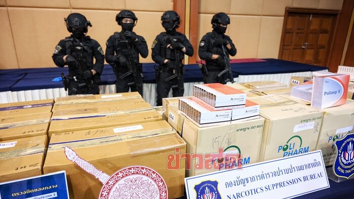 เมื่อเวลา 12.00 น. วันที่ 11 มิ.ย.2568 ที่กองบัญชาการตำรวจปราบปรามยาเสพติด (บช.ปส.) พล.ต.ท.สำราญ นวลมา ผู้ช่วยผู้บัญชาการตำรวจแห่งชาติ (ผู้ช่วย ผบ.ตร.) พร้อมด้วย พล.ต.ท.สันติ ชัยนิรามัย ผบช.ปส., นายกองตรี ดร.ธนกฤต จิตรอารีย์รัตน์ ผู้ช่วยรัฐมนตรีประจำกระทรวงสาธารณสุข, นพ.วิทิต สฤษฎีชัยกุล รองเลขาธิการคณะกรรมการอาหารและยา และหน่วยงานที่เกี่ยวข้อง