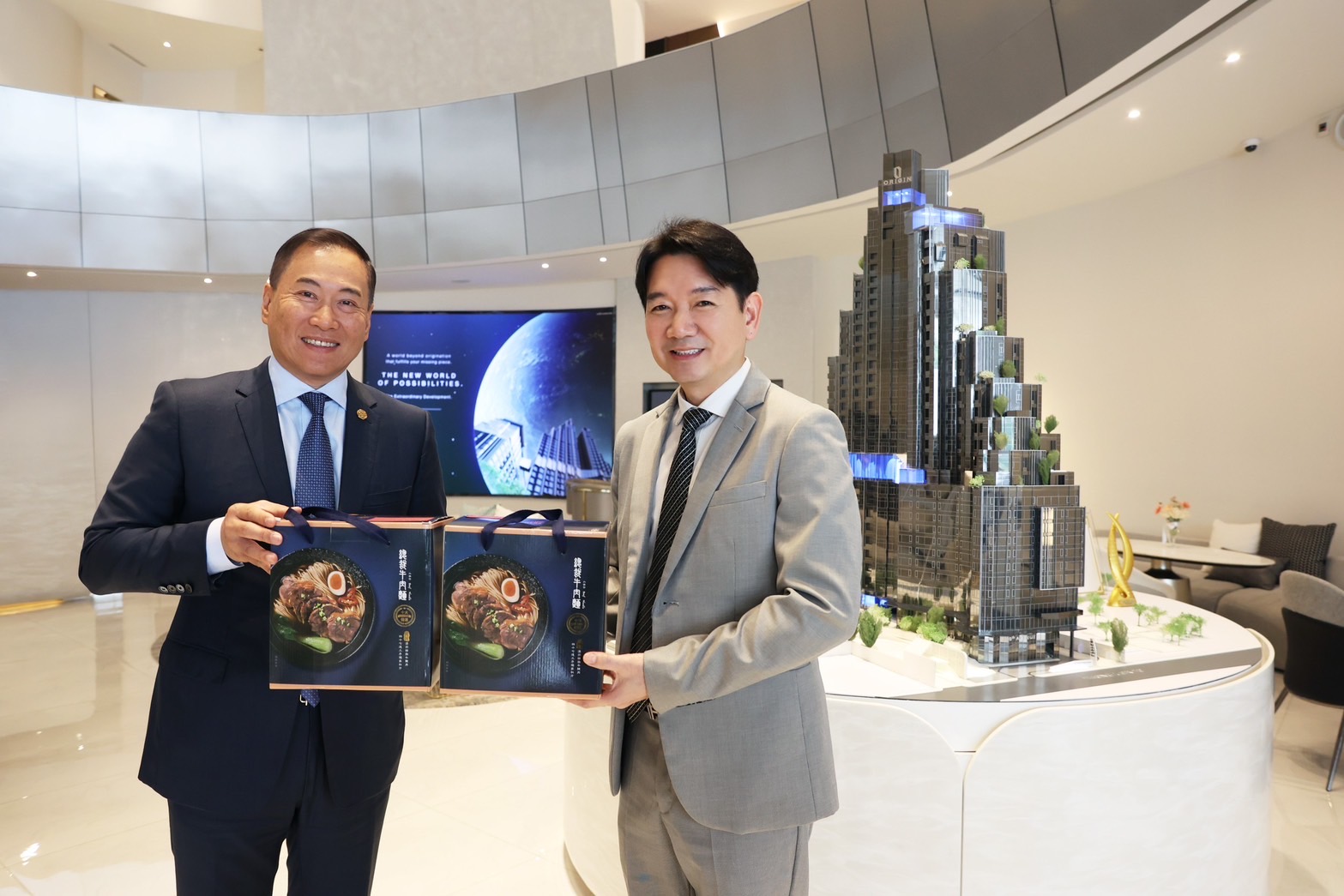 อังเดร คูมหาเศรษฐีแห่งไต้หวัน ทายาท Chailease Group (คนซ้าย) และ พีระพงศ์ จรูญเอก ประธานเจ้าหน้าที่บริหาร บริษัท ออริจิ้น พร็อพเพอร์ตี้ จำกัด (มหาชน) หรือ ORI (คนขวา)[/caption]