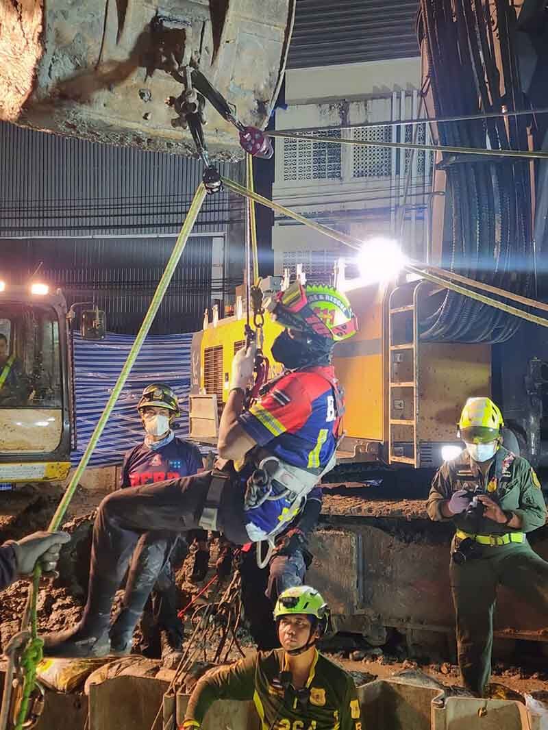 - พบร่างแล้ว! คนงานตกหลุมรถไฟฟ้า ลึก 11 เมตร ส่งจนท.โรยตัวนำขึ้นมา