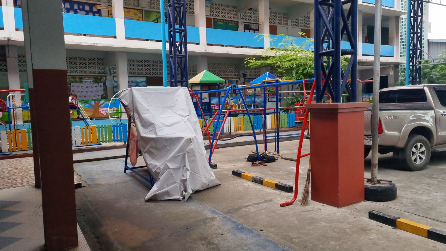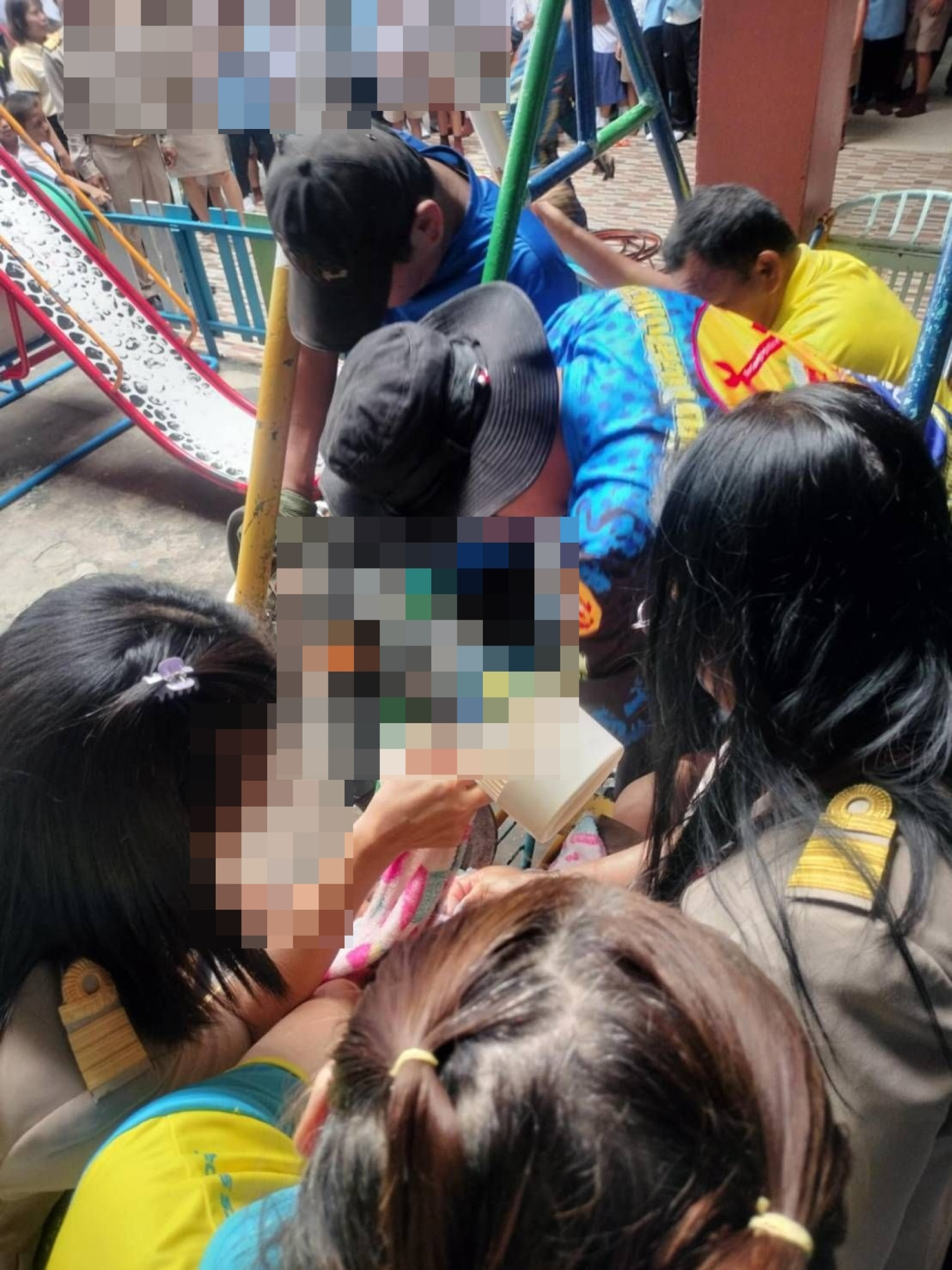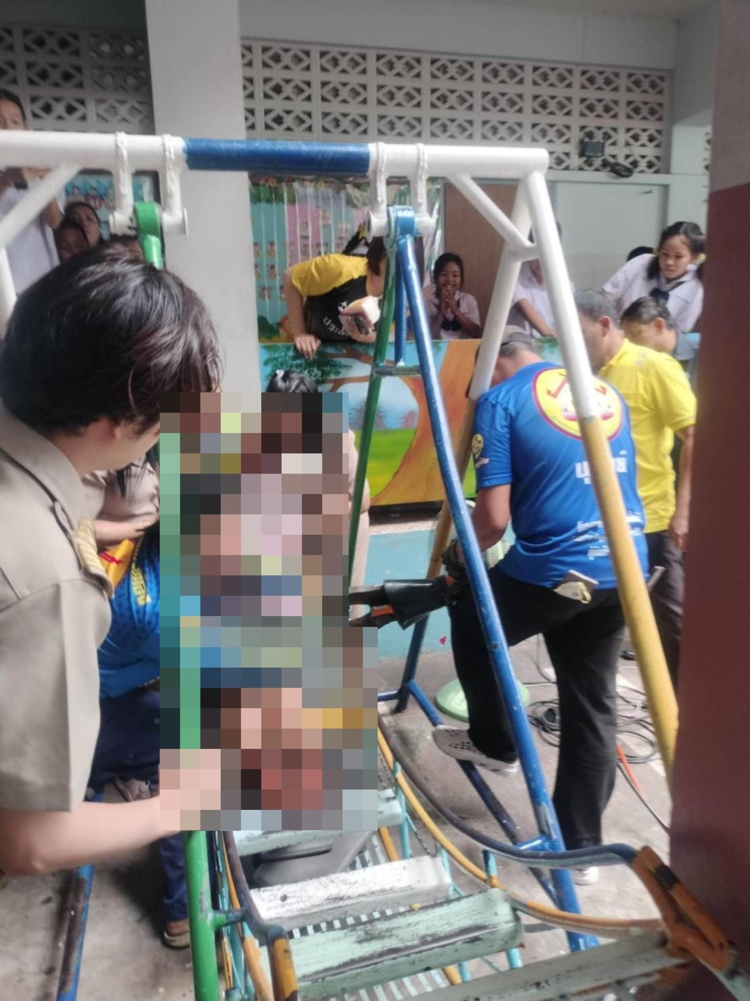 เด็กชายป.2 ตัวติดคาเครื่องเล่นไวกิ้งสนามเด็กเล่นของโรงเรียนด้านครู-กู้ภัยเร่งช่วยออกมาปลอดภัย