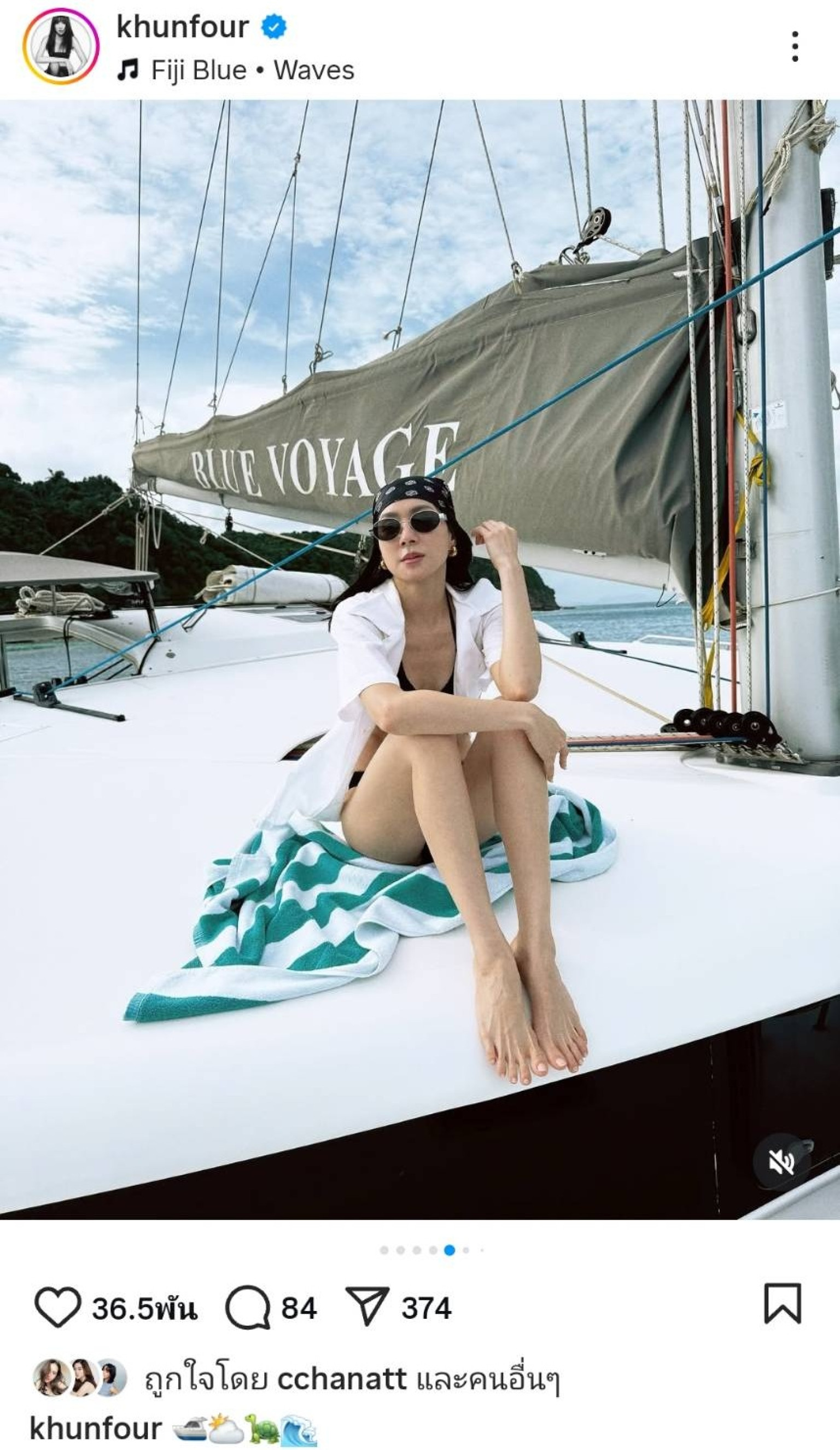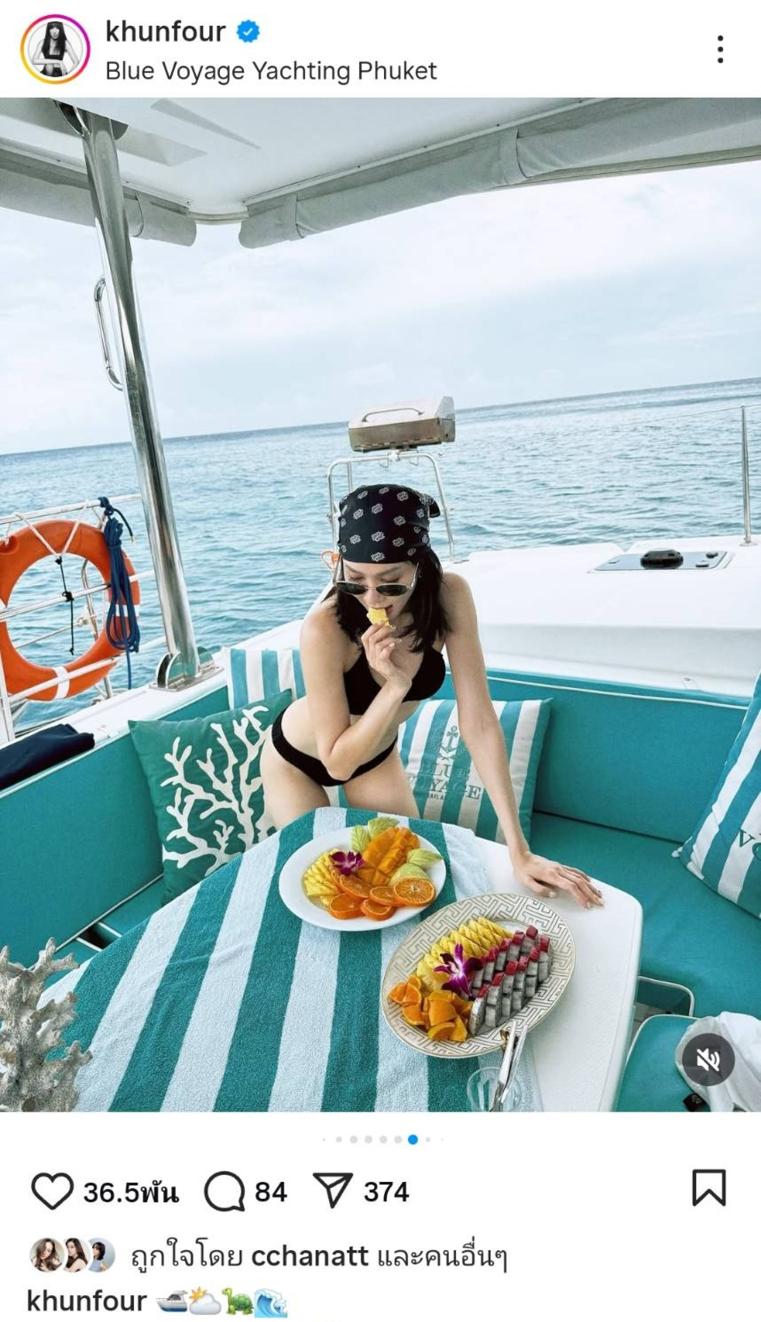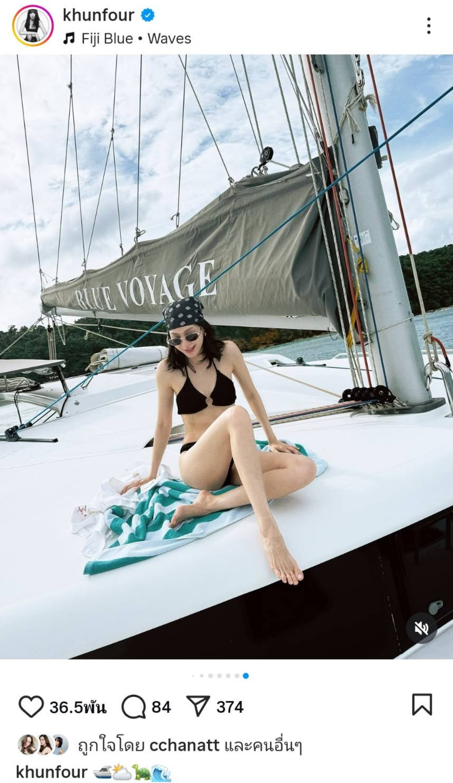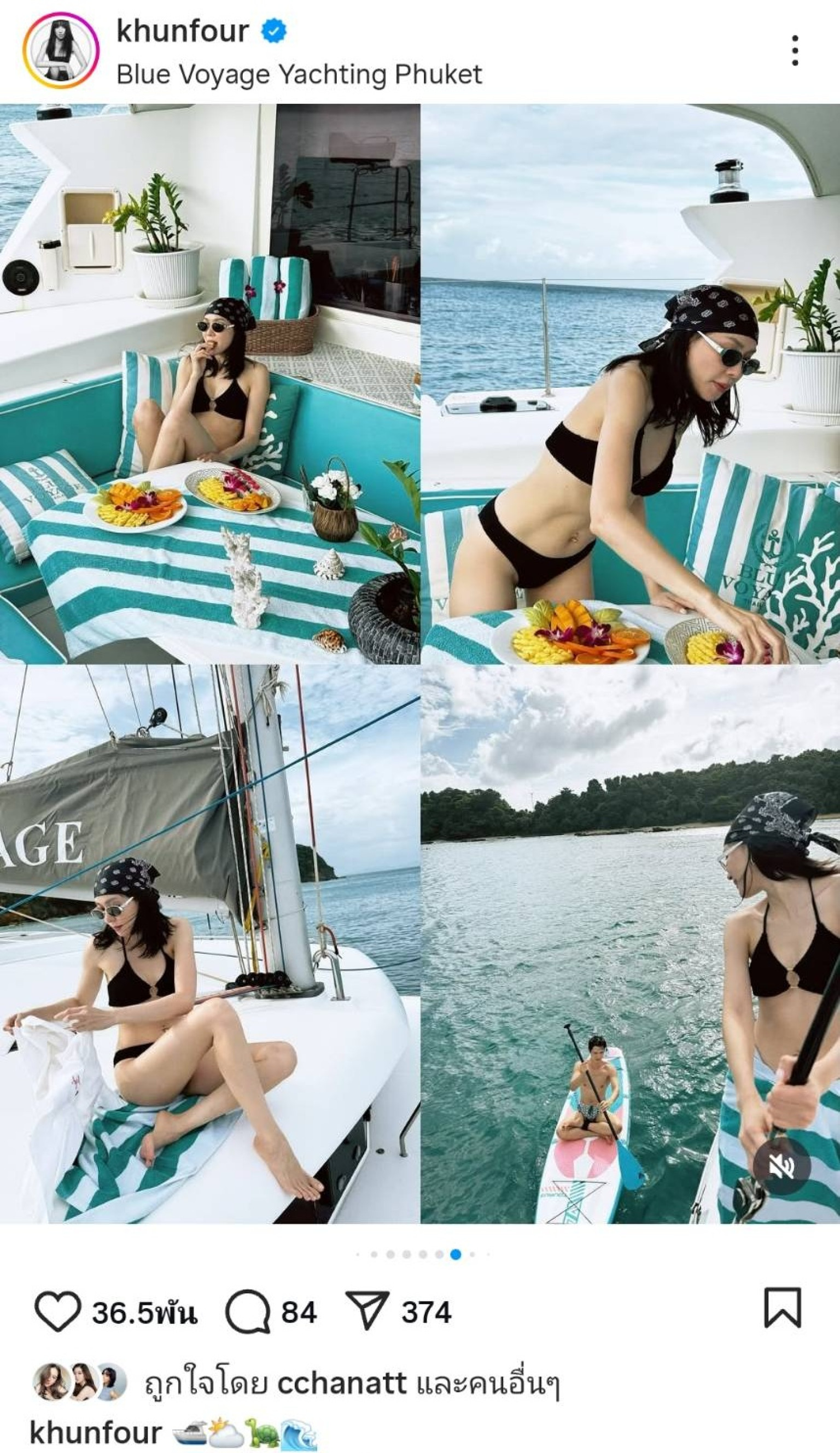 โซเชียลลุกเป็นไฟ! “โฟร์ ศกลรัตน์” นักร้องและนักแสดงชื่อดัง เผยภาพสุดฮอตในชุดบิกินีสีดำบนเรือยอร์ชสุดหรูกลางทะเลภูเก็ต ผ่านอินสตาแกรมส่วนตัว งานนี้ดาเมจแรงจนยอดไลก์พุ่งแตะกว่า 36,000 ครั้ง พร้อมคอมเมนต์ชมความสวยและความปังรัว ๆ
