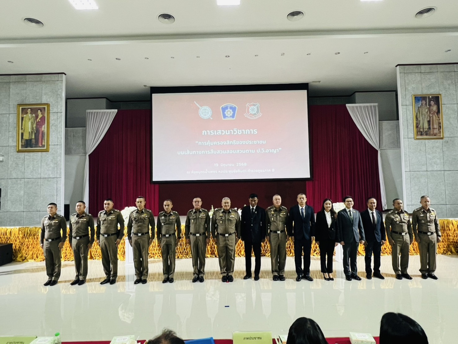 วันที่ 19 มิถุนายน 2568 ที่ ห้องบุตรน้ำเพชร หอประชุมชัยจินดา ตำรวจภูธรภาค 8.จังหวัดภูเก็ต สำนักงานตำรวจแห่งชาติ (ตร.) โดย พล.ต.อ.กิตติ์รัฐ พันธุ์เพ็ชร์ ผู้บัญชาการตำรวจแห่งชาติ มอบหมายให้ พล.ต.อ.นิรันดร เหลื่อมศรี รอง ผบ.ตร. (รับผิดชอบงานด้านกฎหมายและคดี) เป็นประธานในพิธีเปิดการเสวนาทางวิชาการ หัวข้อ “การคุ้มครองสิทธิของประชาชน บนเส้นทางการสืบสวนสอบสวนตาม ป.วิ.อาญา” เพื่อรับฟังความคิดเห็นจากประชาชนและหน่วยงานในกระบวนการยุติธรรมต่อร่าง พ.ร.บ.แก้ไขเพิ่มเติม ป.วิ.อาญา (ร่างของ ส.ส.พรรคประชาชน) ในพื้นที่ภาคใต้ โดยมี พล.ต.ท. อิทธิพล อิทธิสารรณชัย ผู้ช่วย ผบ.ตร. พล.ต.ท.สุรพงษ์ ถนอมจิตร ผบช.ภ.8 พล.ต.ท.อำนวย นิ่มมะโน ก.ร.ตร./อดีต ผบช.ภ.1 พร้อมด้วยผู้บังคับบัญชาระดับ รอง ผบช. และ ผบก.ในสังกัด ภ.8 และ ภ.9 ร่วมงานเสวนา