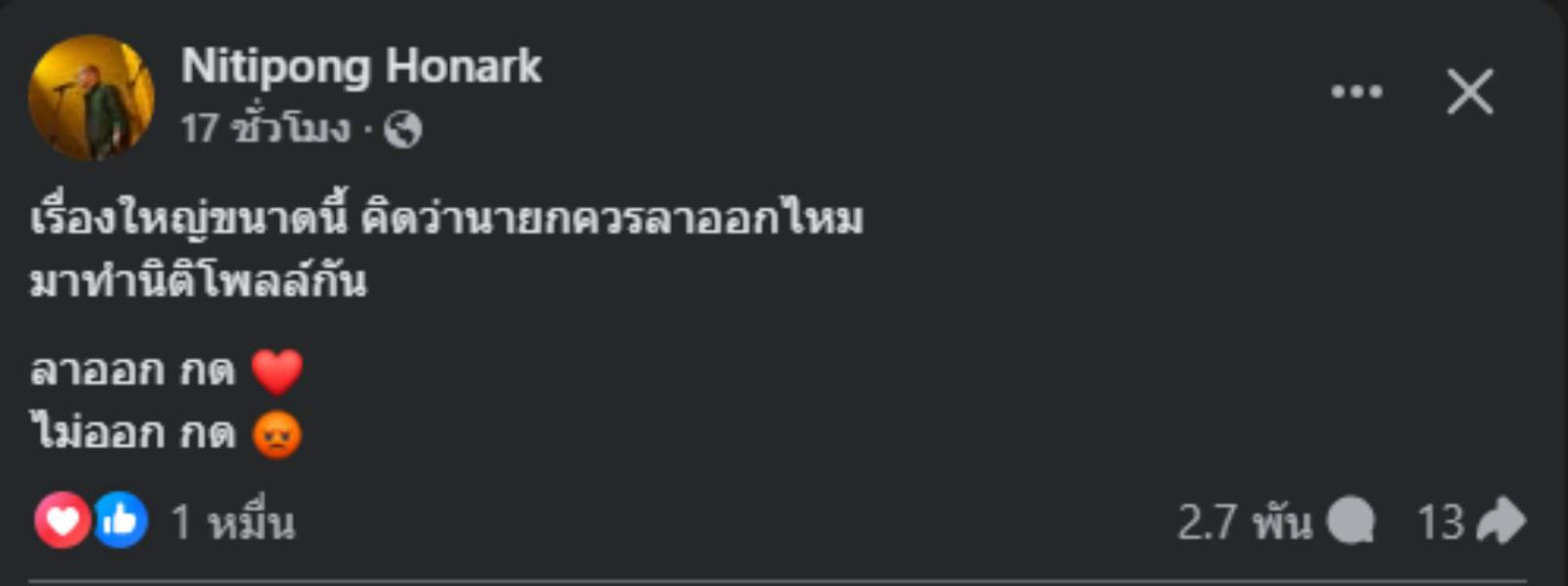 วันที่ 20 มิ.ย.68 "พี่ดี้" นิติพงษ์ ห่อนาค นักแต่งเพลงชื่อดัง โพสต์ข้อความผ่าน เฟซบุ๊ก Nitipong Honark ระบุว่า… เรื่องใหญ่ขนาดนี้ คิ...