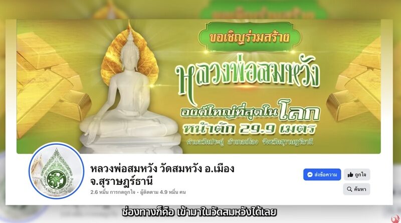 โดยบอกบุญกับคนที่อยากทำบุญกับทางวัดสมหวัง มีการสร้างซุ้มศาลา กำแพงวัด และหลวงพ่อสมหวัง เข้ามาที่วัดสมหวัง อ.เมือง จ.สุราษฎร์ธานี ได้เลย พร้อมทั้งเผยเลขธูปท้ายคลิป เห็นเป็นเลข 571 แต่ก็มีคนบอกชอบเลข 175 และ 751