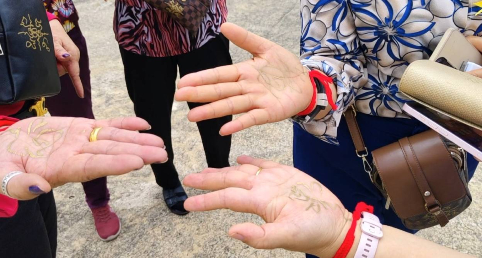 ชาวบ้านหลายคนแห่เจิมมือกับหลวงเตี่ยเสริมดวงการงานไม่พลาดดูตัวเลขฝ่ามือส่วนป้าชาวกทม.ดวงดีบอกมา 3 ครั้งได้โชค 3 ครั้ง งวดนี้ขอโชว์ตัวเลขที่ได้