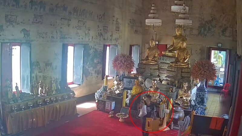ตำรวจเปิดกล้องล่าจับโจร เข้าโบสถ์ไหว้พระวัดหลวงพ่อเกจิดัง งัดตู้เหล็กไม่ได้ คว้าตู้ไม้ใส่บริจาคทำบุญค่าน้ำค่าไฟหนีออกด้านหลังทุบเอาเงินเกลี้ยง