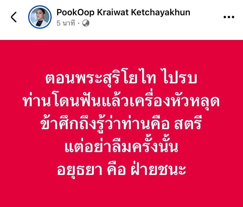 หลังเกิดเหตุการณ์ขึ้น'PookOop Kraiwat' ซึ่งเป็นผู้จัดการกองประกวด Miss Universe Thailand ได้ออกมาโพสต์ว่า "ตอนพระสุริโยไท ไปรบ ท่านโดนฟันแล้วเครื่องหัวหลุด ข้าศึกถึงรู้ว่าท่านคือ สตรี แต่อย่าลืมครั้งนั้น อยุธยา คือ ฝ่ายชนะ"