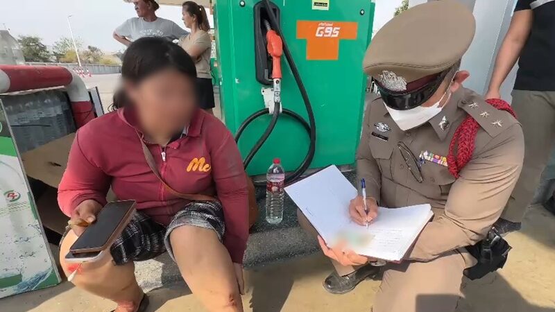 อุบัติเหตุเศร้า รถบรรทุกพ่วงเลี้ยวเข้าปั๊มน้ำมันเฉี่ยวชนทับ รถจักรยานยนต์หนุ่มขี่ไปส่งแฟนสาว เอื้อมมือดึงคนรักรอดช่วงเสี้ยววินาทีสุดท้ายของชีวิตก่อนตัวเองโดนล้อทับดับ