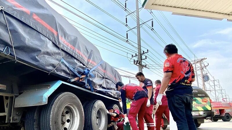 เมื่อเวลา 15.00 น. วันที่ 29 ม.ค.2568 ร.ต.อ.อนุสรณ์ หมวกทอง รองสารวัตร(สอบสวน) สภ.นครหลวง จ.พระนครศรีอยุธยา รับแจ้งอุบัติเหตุรถบรรทุกพ่วงชนทับรถจักรยานยนต์ มีผู้เสียชีวิตและบาดเจ็บ บริเวณทางเข้าปั๊มน้ำมัน ริมถนนสายเอเชีย หลักกิโลเมตรที่ 27 ฝั่งขาเข้ากรุงเทพมหานคร ต.บ่อโพง อ.นครหลวง จ.พระนครศรีอยุธยา จึงรุดไปตรวจสอบพร้อมเจ้าหน้าที่สมาคมอยุธยารวมใจ