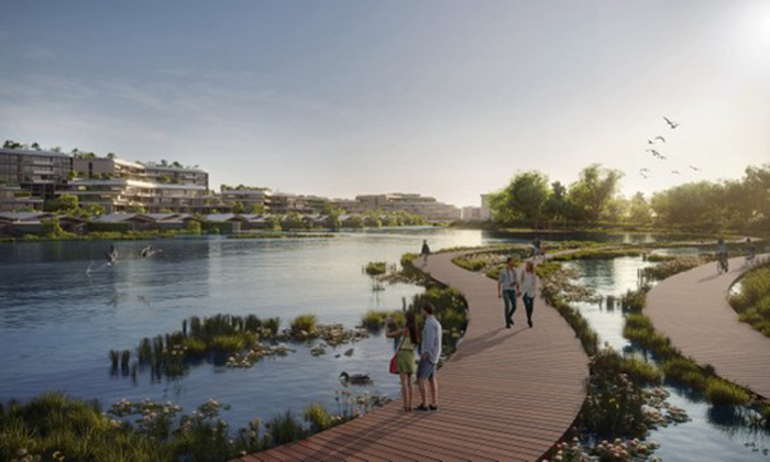 ทั้งโครงการเชื่อมต่อกันด้วยเส้นทางเดินและปั่นจักรยานระยะทางรวม 15 กิโลเมตร และประกอบไปด้วยอพาร์ตเมนต์ที่กว้างขวาง สวนเดินเล่นบนชั้นดาดฟ้า และวิลล่าริมน้ำอันหรูหรา ภายในบริเวณที่มีภูมิทัศน์ของป่าฝน สวนพฤกษศาสตร์ และทะเลสาบอันเงียบสงบ