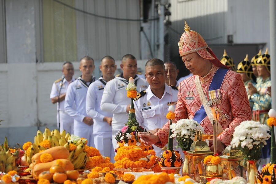 ผบ.ทร.บวงสรวงพระภูมิเจ้าที่ เซ่นไหว้แม่ย่านาง เรือพระราชพิธี เป็นขวัญกำลังใจให้แก่กำลังพลประจำเรือ ย้ำทหารเรือ ดูแลทั้งขบวนเรือ ความปลอดภัยอย่างสูงสุด