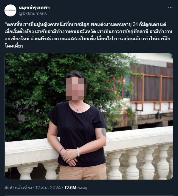 เพจดัง "มนุษย์กรุงเทพฯ" ก็ได้ทำคอนเทนต์ลงในวันแม่เช่นกัน โดยได้สัมภาษณ์ ผู้หญิงคนหนึ่ง เกี่ยวกับประเด็นความเป็นแม่และครอบครัว