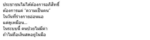 นี่ไม่ใช่เรื่องงบประมาณ ไม่ใช่เรื่องคนไข้เยอะ แต่มันคือเรื่อง สามัญสำนึกของคนที่เลือกอาชีพแพทย์ แต่ลืมไปว่า “คนจนก็ป่วยเป็น” โรงพยาบาลยังมีป้าย มีตึก มีตรากระทรวง