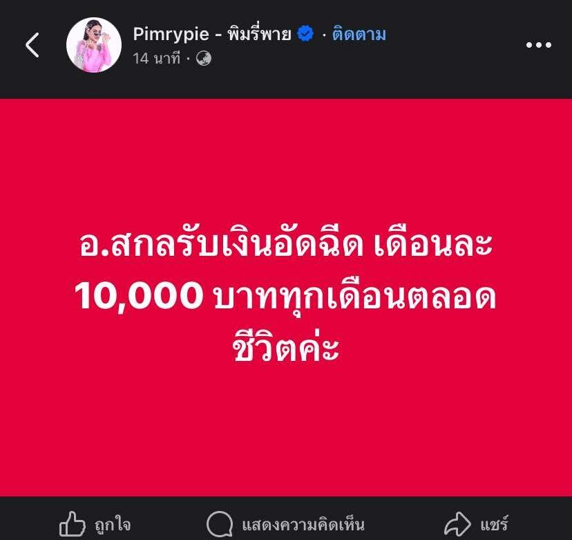 อ่านข่าวต้นฉบับได้ที่ : พิมรี่พาย อัดฉีด อ.สกล ทีมหมอนทองวิทยา เดือนละหมื่นตลอดชีวิต ลั่นสนามใหม่มาแน่