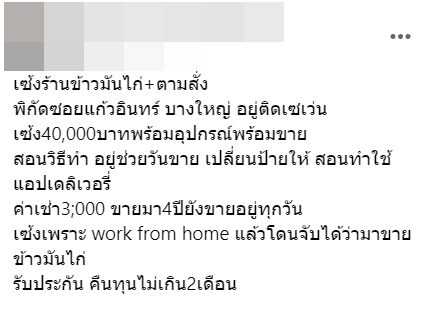 ค่าเช่า 3,000 ขายมา4ปียังขายอยู่ทุกวัน เซ้งเพราะ work from home แล้วโดนจับได้ว่ามาขายข้าวมันไก่ รับประกัน คืนทุนไม่เกิน2เดือน”