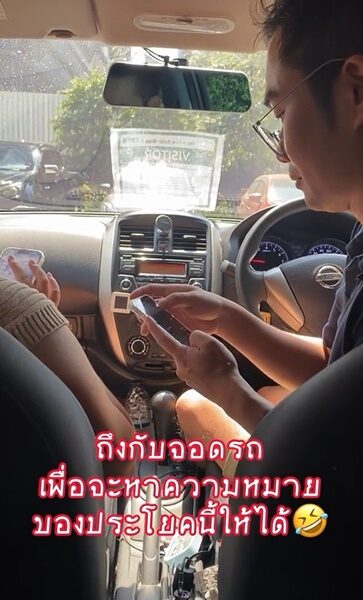 ทว่า ทันทีที่เพื่อนได้ฟัง ก็ทำหน้างุนงงเหมือนไม่เข้าความหมาย และพยายามขอให้คนไทยทวนอีกครั้งว่า พูดว่าอะไร ก่อนจะเข้ามาในรถ แล้วเปิดโทรศัพท์มือถือ หาคำแปล วนฟังในแอปฯ หลายครั้งกันเลยทีเดียว