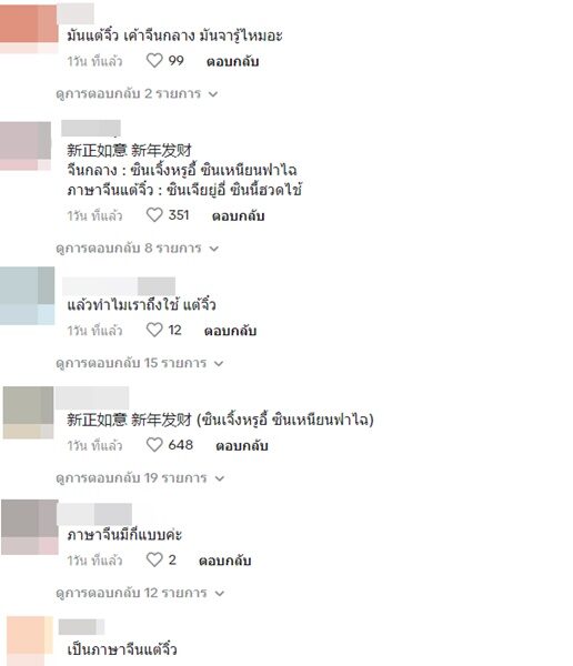 โดยล่าสุดผู้ใช้ TikTok"nachalee.t" ได้แชร์ประสบการณ์พูดคำว่า"ซินเจียยู่อี่ ซินนี้ฮวดไช้" อวยพรเพื่อนคนจีน เนื่องด้วยเทศกาลตรุษจีน พร้อมระบุข้อความว่า "ตกลงมันเป็นประโยคจีนป่ะแม่?55"