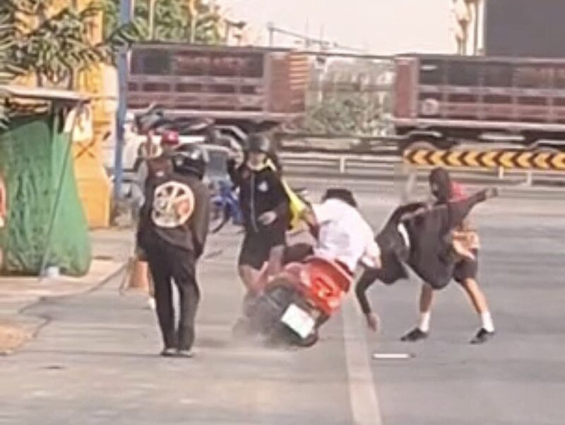 อ่านข่าวต้นฉบับได้ที่ : เดือด! แก๊งโจ๋ขาสั้น มีด-ตะขอ ไล่ฟันกันกลางถนน ขี่จยย.พุ่งชนอริจนตัวเองสลบ