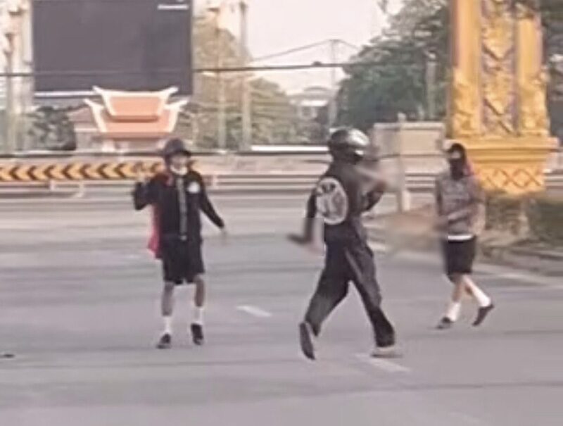 ระหว่างเกิดเหตุยังมีกลุ่มนักเรียนขี่รถจักรยานยนต์เข้ามาสมทบ ก่อนพุ่งชนคู่กรณี ส่งผลให้รถจักรยานยนต์ล้มคว่ำ นักเรียนชายที่ขับขี่ได้รับบาดเจ็บและนอนสลบอยู่บนพื้นถนน ท่ามกลางความโกลาหล