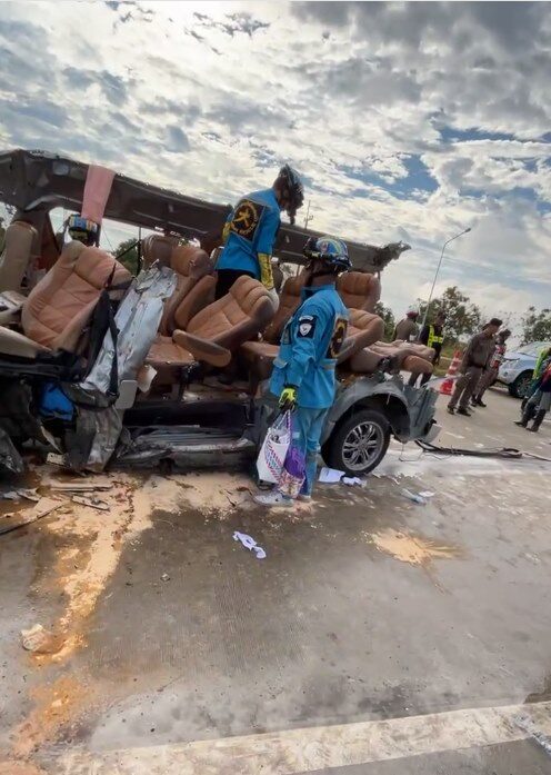 ด่วน สลดอีก 4 ศพ รถตู้ชนท้ายรถบรรทุกพ่วง พระสงฆ์ มรณภาพ 1 รูป เจ็บอีก 5 ราย