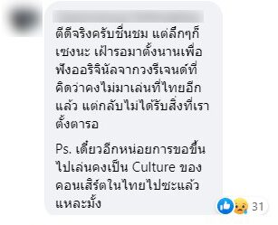 บางส่วนไม่เห็นด้วยอย่างแรง ออกมาฉะเดือด "เสียเงินมาดูก็อยากดูศิลปิน ถ้าจะเล่นก็ไปเปิดห้องซ้อมเลย" จนกลายเป็นดราม่าที่ถูกหยิบมาถกเถียงกันในโลกโซเชียล ซึ่งบทสรุปจะเป็นอย่างไร คงต้องรอติดตามกัน