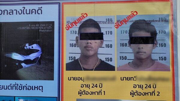 จับแล้ว 2 มือปืน วัย 24 ปี กระหน่ำยิงคู่อริเสียชีวิตภายในรถกระบะ หลังกลับจากเที่ยวสถานบันเทิงกลางเมืองเพชรบุรี