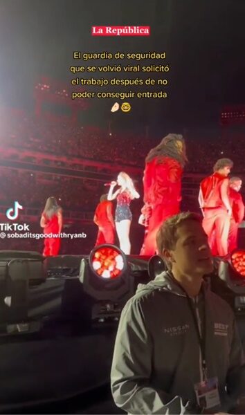 เรียกว่ากลายเป็นไวรัลทั่วโลก มียอดชมมากกว่า 7 ล้านครั้ง สำหรับคลิปหนุ่มบอดี้การ์ดรายหนึ่ง ขณะที่เขายืนอยู่หน้าเวทีคอนเสิร์ต ‘Eras Tour’ ของ 'เทย์เลอร์ สวิฟต์' (Taylor Swift) พร้อมกับร้องเพลง “I Know You Were Trouble” ตามศิลปินบนเวที แบบเก็บทรงไม่อยู่เลยทีเดียว