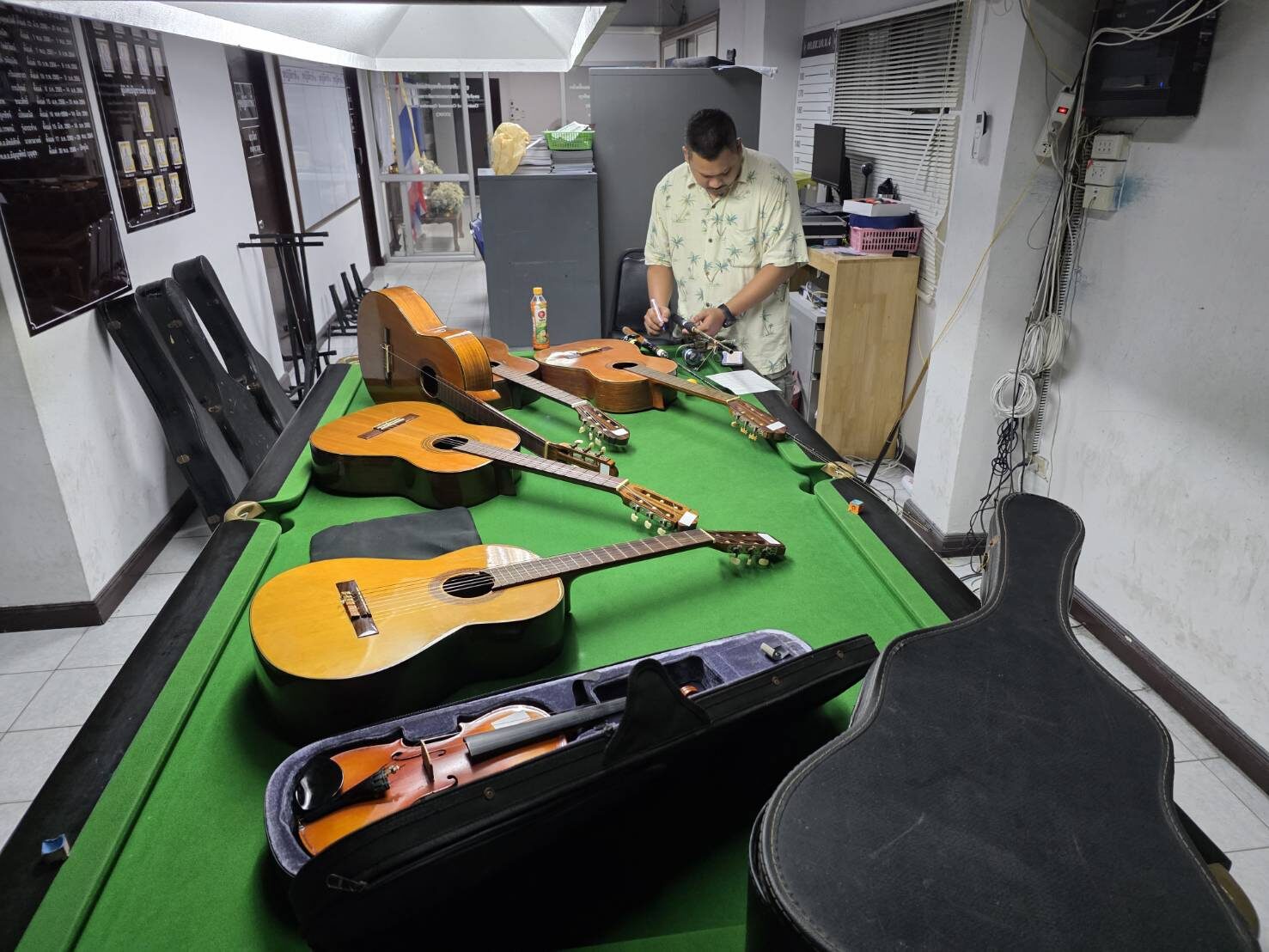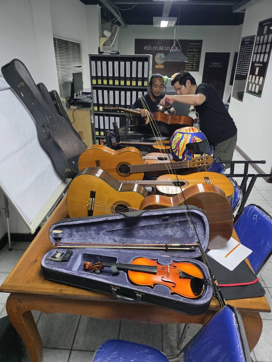 ผลการตรวจค้นพบ กีตาร์ ยี่ห้อ CLASSIC GUITAR 100 พร้อมกล่อง จำนวน 1 ตัว , กีตาร์ ยี่ห้อ YOKOHAMA พร้อมกล่อง จำนวน 1 ตัว , กล่องกีตาร์ จำนวน 1 ใบ (ของกลางลำดับที่ 13 – 15)