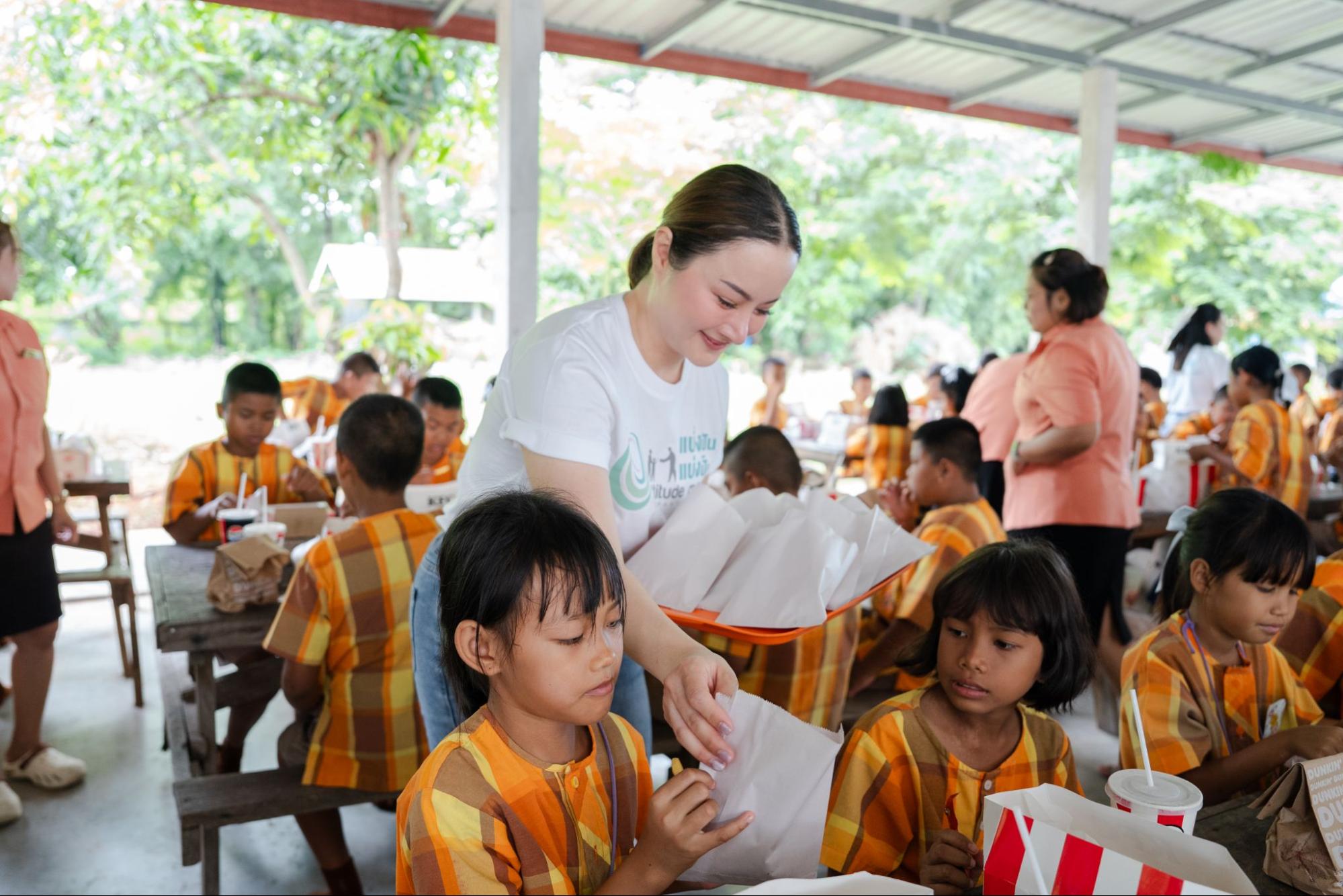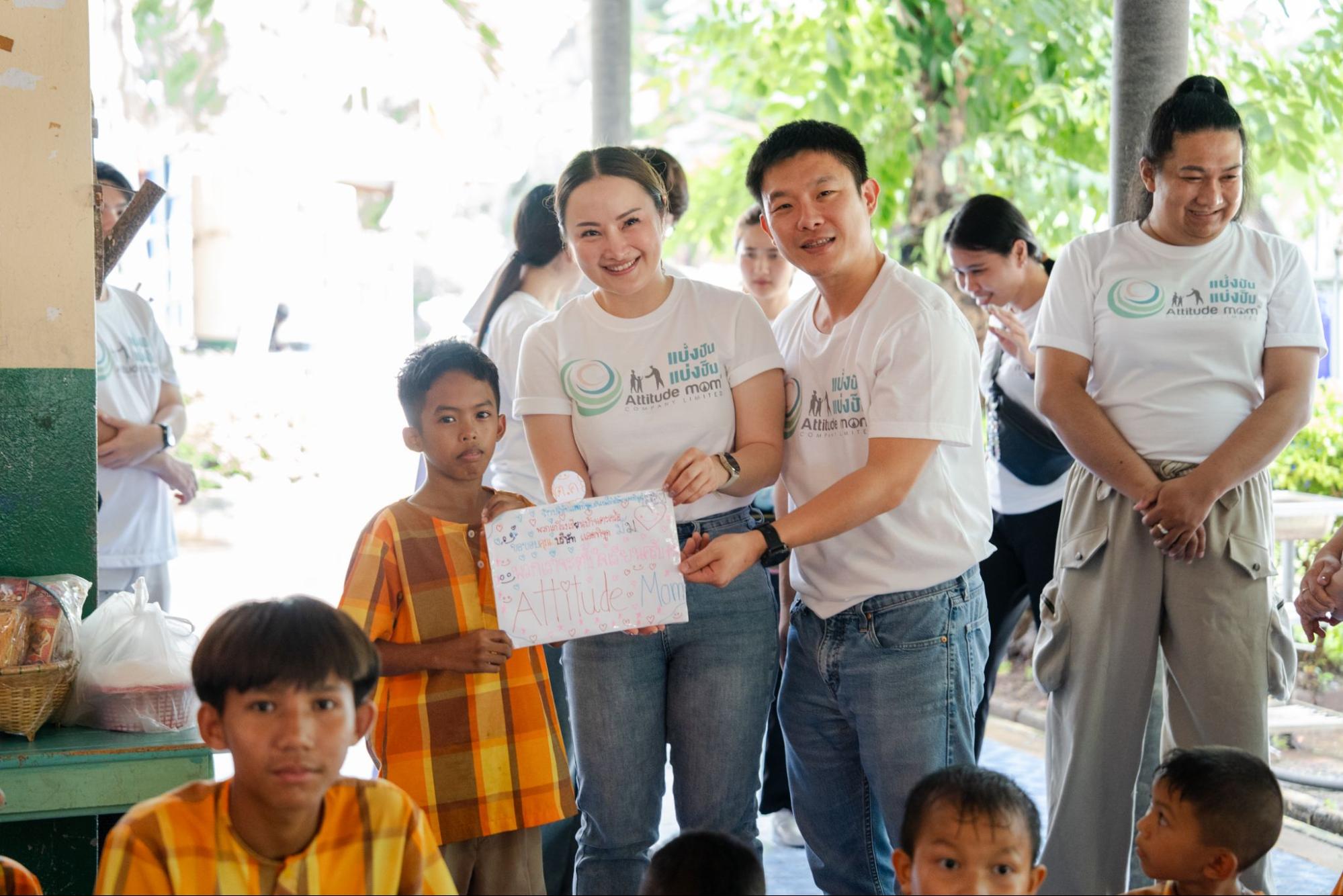 แบรนด์ Attitude Mom ยังดำเนินการช่วยเหลือสังคมในด้านต่างๆ ทั้งการบริจาคถุงกำลังใจให้กับผู้ประสบภัยในเหตุการณ์ต่างๆ และยังเล็งเห็นถึงความสำคัญของการเรียนรู้โดยการสนับสนุนด้านการศึกษาให้กับเด็กๆ ซึ่งเป็นการพัฒนาและยกระดับคุณภาพชีวิตของคนไทยให้ดีขึ้น