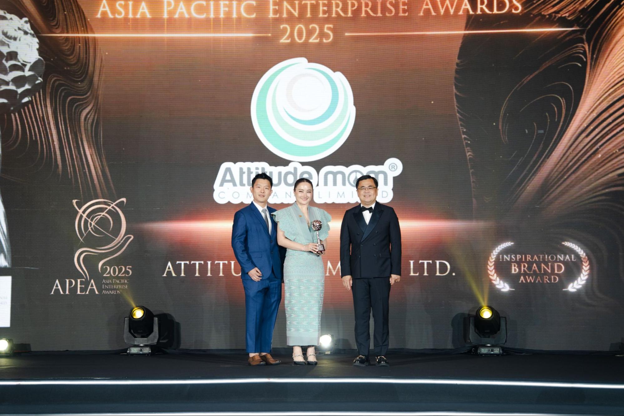 ด้วยความมุ่งมั่นในการพัฒนาสินค้าและใส่ใจรายละเอียดทำให้ตลอดระยะเวลา 10 ปี ที่ผ่านมา แบรนด์ Attitude Mom ได้รับรางวัลในการการันตีคุณภาพสินค้ามาอย่างต่อเนื่อง และในปีที่ 10 บริษัท แอทติทูด มัม จำกัด คว้ารางวัล Asia Pacific Enterprise Award (APEA) 2025 สาขา Inspirational Brand Award ซึ่งแบรนด์ Attitude Mom เป็นเพียงแบรนด์เดียวในอุตสาหกรรมแม่และเด็กในประเทศไทยที่ได้รับรางวัลในปี 2025 เพื่อตอกย้ำและสร้างความเชื่อมั่นให้กับทุกท่านในการเดินหน้าและยกระดับเครื่องปั๊มนมแบรนด์คนไทยสู่มาตรฐานระดับสากล