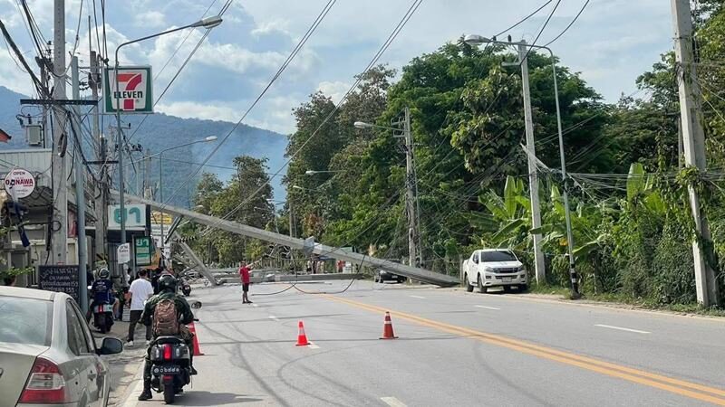 ที่เกิดเหตุ เจ้าหน้าที่พบรถกระบะบรรทุกน้ำดื่ม พุ่งชนเสาไฟฟ่าริมทาง บริเวณด้านหน้าร้านฮิมโก้ง ถนนสายหนองฮ่อ ต.ช้างเผือก อ.เมืองเชียงใหม่ ทำให้เสาไฟฟ้าแรงสูงขนาดใหญ่หักโค่นลงมา 24 ต้น ขวางถนน และบางต้นก็ทับร้านค้าของชาวบ้านในระแวก รวมทั้งรถจักรยานยนต์ที่จอดข้างรวม 20 คัน ยังเกิดไฟไหม้ร้านอาหารชื่อร้าน "ฮิมโก้ง" ในระแวกดังกล่าว เจ้าหน้าที่ดับเพลิงและชาวบ้านได้ช่วยกันดับไว้ได้ทัน