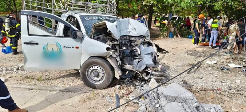 ค่าเสียหายมากกว่า10ล้าน รถกระบะบรรทุกน้ำซิ่งชนเสาไฟฟ้าล้ม 24 ต้น เจ็บ2