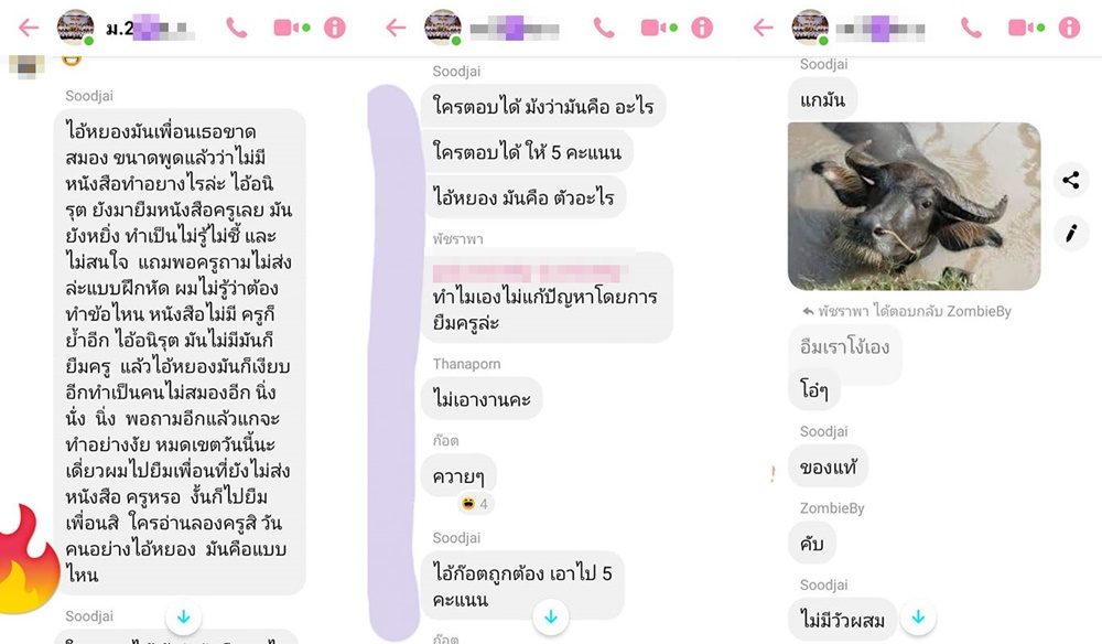 โดยสมาชิกเฟซบุ๊กรายหนึ่งได้โพสต์ถึงเรื่องราวของลูก ที่เป็นเด็กเรียนช้า มีปัญหาในการอ่าน แต่พบว่าผู้ที่เป็นครู กลับนำปัญหาเรื่องการไม่ส่งงาน มาเขียนลงในกลุ่มที่มีนักเรียนอยู่ด้วยจำนวนมาก พร้อมกับ เรียกให้เด็กคนอื่นๆ ช่วยตอบว่า เด็กคนนี้เรียกว่าอะไร ซึ่งเพื่อนในห้องได้มาตอบว่า เป็นควาย โดยที่ครูขยี้ต่อว่า ตอบถูกเอาไป 5 คะแนน ก่อนที่จะส่งรูปควายเข้ามาในกลุ่มซ้ำ พร้อมกับมีเพื่อนๆ ในห้องมาช่วยกันซ้ำเติม จนทำให้เด็กเกิดความอับอาย