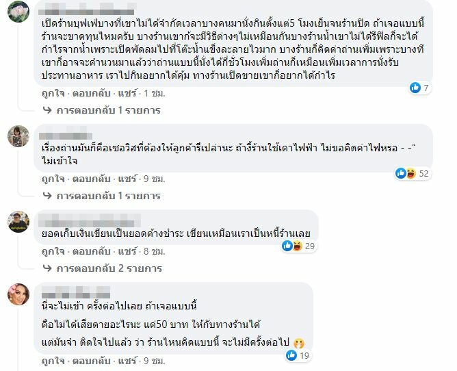 โดยโพสต์ดังกล่าวมีชาวเน็ตจำนวนมากต่างเข้ามาแสดงความคิดเห็น ว่า ร้านบุฟเฟ่ต์ส่วนใหญ่มักต้องคิดราคาของต่างๆ ที่ไม่รวมอยู่ในบุฟเฟ่ต์เพื่อทำกำไร แต่ถ่านเหมือนเป็นเซอร์วิสที่ต้องให้กับลูกค้าฟรี และไม่ค่อยเจอร้านที่คิดเงินยุบยิบขนาดนี้มาก่อน ราคา 50 บาท อาจจะไม่เสียดาย แต่ทำให้เสียความรู้สึกได้ง่ายๆ กับร้านประเภทนี้