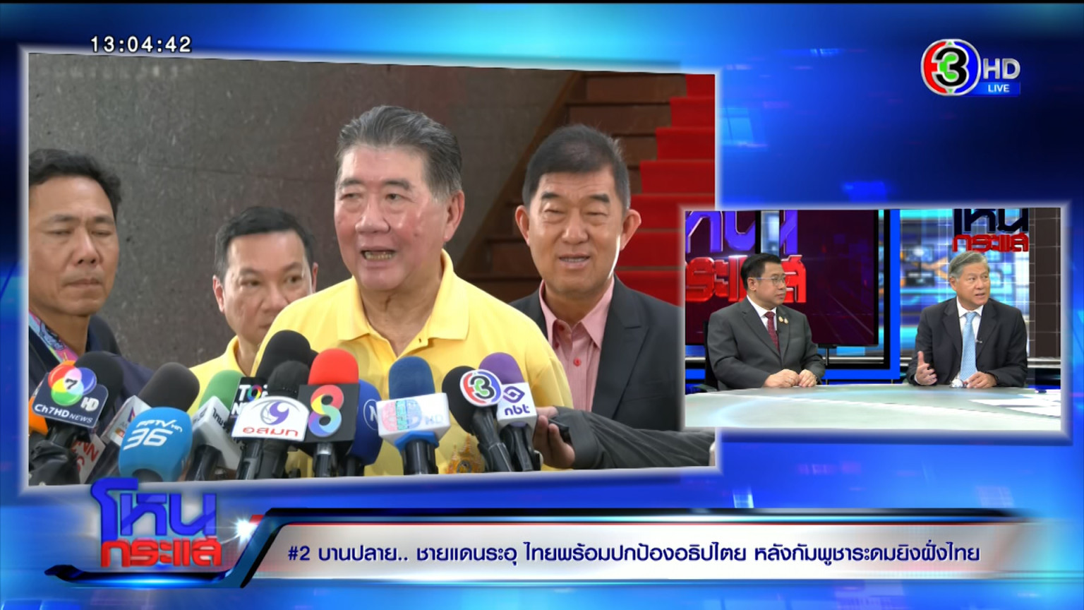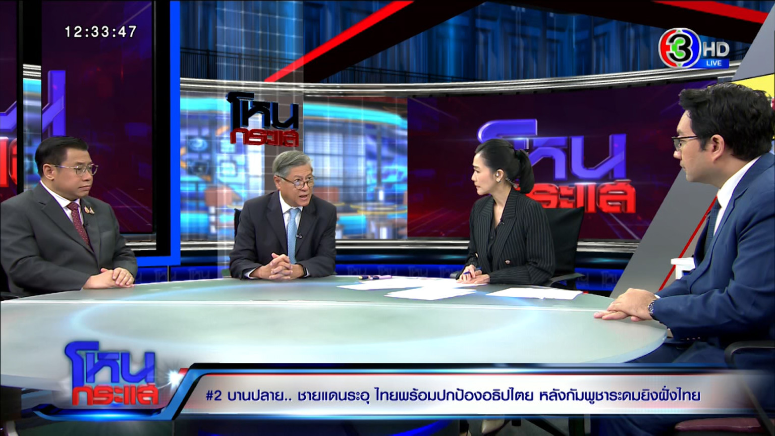 รายการ โหนกระแส วันที่ 25 ก.ค. “หมวย อริสรา กำธรเจริญ” ดำเนินรายการแทน “หนุ่ม กรรชัย กำเนิดพลอย” ผลิตในนามบริษัท ดีคืนดีวัน จำกัด ออกอากาศทุกวันจันทร์-ศุกร์ เวลา 12.35 น. ทางช่อง 3 กดหมายเลข 33 เกาะติดสถานการณ์ความตึงเครียดชายแดนไทย-กัมพูชา หลังจากกัมพูชาเปิดฉากโจมตีประเทศไทย โดยสัมภาษณ์รัศม์ ชาลีจันทร์ ผู้ช่วยรัฐมนตรีประจำกระทรวงการต่างประเทศ, จักรภพ เพ็ญแข ที่ปรึกษาเลขาธิการนายกรัฐมนตรี, รศ.ดร.ตุลยภาค ปรีชารัชช นายกสมาคมภูมิภาคศึกษา / อาจารย์สาขาเอเชียตะวันออกเฉียงใต้ศึกษา ม.ธรรมศาสตร์