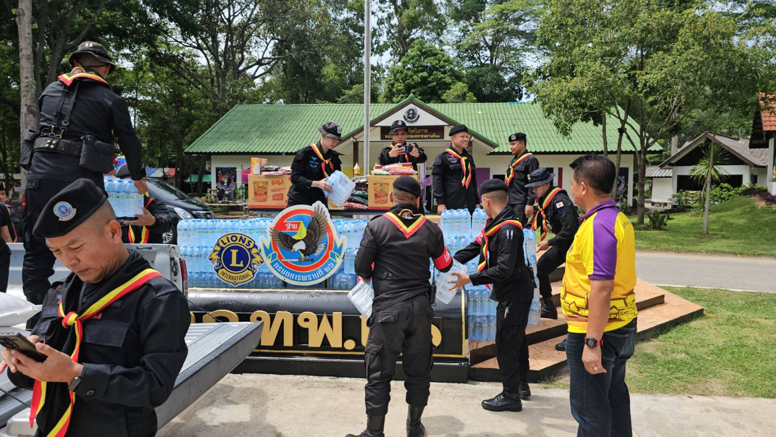 เมื่อเวลา 10.30 น. วันที่ 8 มิ.ย.68 ที่หน่วยเฉพาะกิจ กรมทหารพรานที่ 26 อ.ละหานทราย จ.บุรีรัมย์ นายธรภัทร เฉยกลาง นายกสโมสรไลอ้อนมิตรภาพบุรีรัมย์ ภาค 310E พร้อมด้วยนางเอ็นดู เทพนคร สมาชิกไลออนส์ฯ ได้นำสิ่งของเครื่องอุปโภค-บริโภค มีทั้งข้าวสาร บะหมี่กึ่งสำเร็จรู ปลากระป๋อง น้ำพริก นำดื่ม กาแฟ เครื่องดื่มบำรุงกำลัง และของใช้จำเป็น