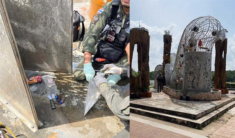 นอกจากนี้ที่บริเวณลานประติมากรรมไม้มะหาด ถนนอุตรกิจ เจ้าหน้าที่พบวัตถุต้องสงสัย อีก 1 จุด ประกอบด้วยผงสารเคมีในซองพลาสติก อุปกรณ์จุดชนวนแบบตั้งเวลา เจ้าหน้าที่อีโอดีทำการเก็บกู้ได้สำเร็จ