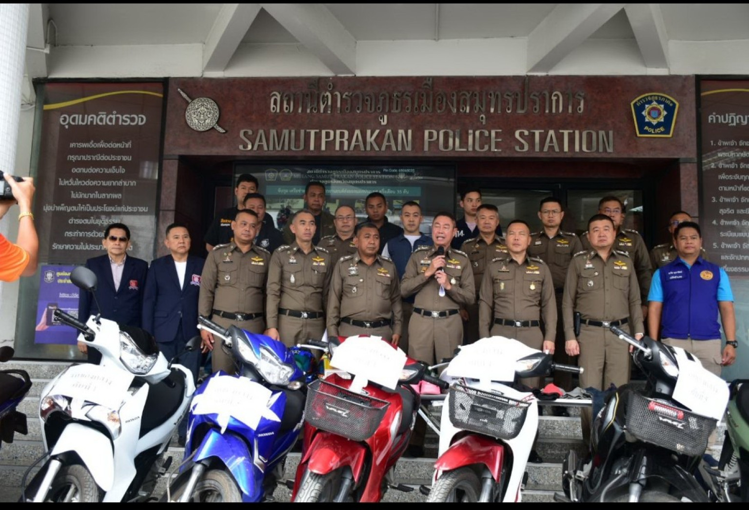 ตำรวจปากน้ำทลายแก๊งลักรถจักรยานยนต์ส่งประเทศเพื่อนบ้าน ตามยึดคืนเจ้าของได้ 7 คัน