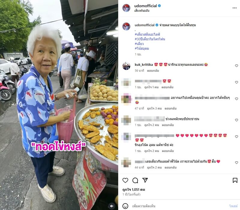 อินสตาแกรม udomofficial โพสต์คลิป โน้ส อุดม ตามแม่ไปจ่ายตลาด พร้อมแคปชั่นว่า “จ่ายตลาดแบบใดให้คืนทุน #เดี่ยวสติลอะไลฟ์ #30ปีเดี่ยวไมโครโฟน #เดี่ยว #โน้สอุดม”