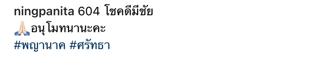 โดย หนิง ปณิตา ยังได้ถือโอกาสนำเลขจากธูปที่เผยให้เห็นกันชัดๆ 3 ตัวเต็ม มาฝากคอหวยอีกด้วย ซึ่งเลขที่ปรากฏนั้นคือเลข 6-0-4 พร้อมเขียนแคปชั่นว่า “604 โชคดีมีชัย อนุโมทนานะคะ #พญานาค #ศรัทธา”