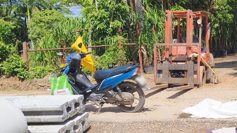 อุบัติเหตุเศร้า หนุ่มใหญ่ขี่ จยย. ชนงายกโฟล์คลิฟท์จอดเสียริมถนนเสียชีวิต ส่วนภรรยา-ลูกสาว 7 ขวบเจ็บ ไม่เห็นเจ้าของรถวางเครื่องหมายให้ระวังกั้นถนนไว้
