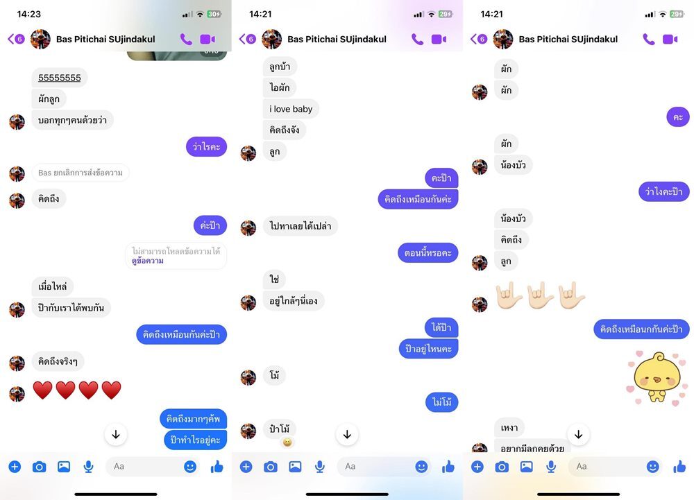 พ่อมักจะชอบบอกว่า “ถ้าป๊าไม่อยู่แล้วก็ดูแลกันนะ อย่าทิ้งกันนะ หนูทำดีแล้วที่ดูแลน้องมาตลอด ให้เข้มแข็งเพราะหนูเป็นเสาหลัก” จะพูดคุยกับพ่อผ่านแชท ทุกวันนี้ก็ยังไม่ได้ลบเพราะหนูรับไม่ได้จริงๆ รู้สึกเหมือนพ่อยังไม่ได้ไปไหน และยังอยู่กับเราตลอด