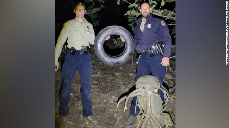 กวางเอลก์ตัวนี้ถูกค้นพบครั้งแรกระหว่างที่เจ้าหน้าที่ออกสำรวจประชากรกวางในเขตป่าไม้ย่านร็อกกี้ เมาเทนต์ ดังกล่าวตั้งแต่ปี 2562 โดยพบว่ามันมียางล้อรถยนต์คล้องคออยู่ ซึ่งตั้งแต่นั้นมาก็มีรายงานการพบเห็นกวางตัวดังกล่าวหลายครั้ง