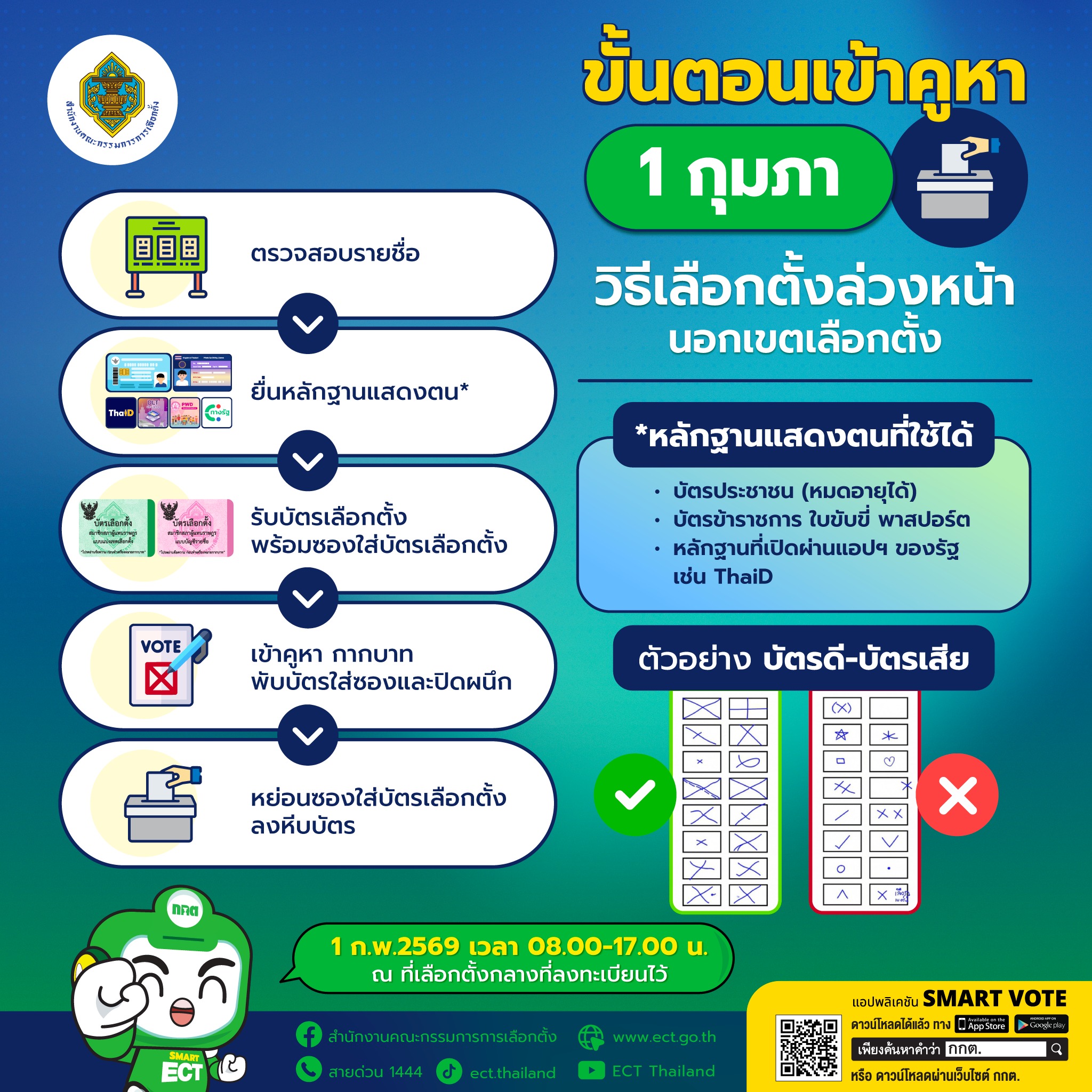อ่านข่าวต้นฉบับได้ที่ : เลือกตั้งล่วงหน้า 2569 เปิดขั้นตอนลงคะแนน 1 ก.พ. นี้